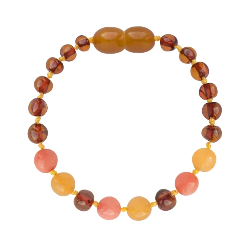 Beschrijving van Amberos Barnsteen armband baby/peuter cognac – Aventurijn koraal
