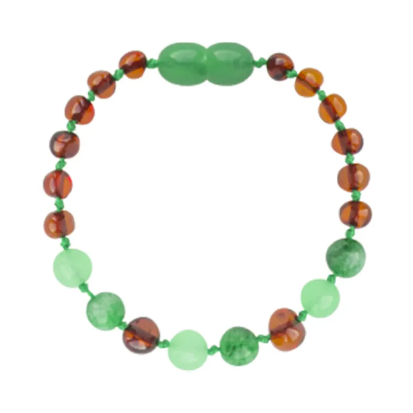 Beschrijving van Amberos Barnsteen armband kind cognac – green jade