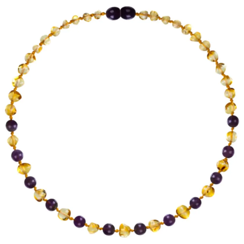 Beschrijving van Amberos Barnsteen ketting baby/peuter lemon amethist jade