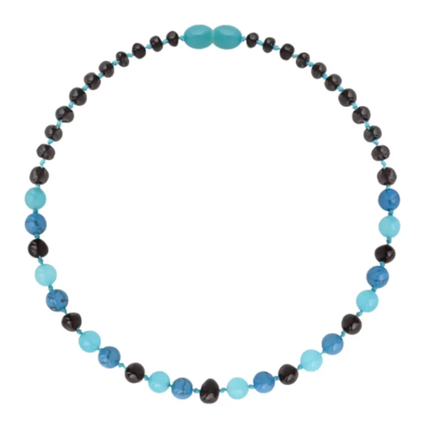 Beschrijving van Amberos Barnsteen ketting kind cherry – turkoois – jade