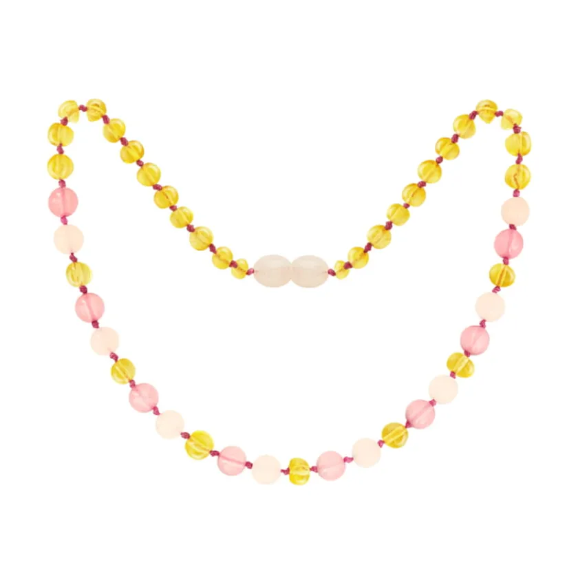 Beschrijving van Amberos Barnsteen ketting kind lemon, rose quartz, pink jade