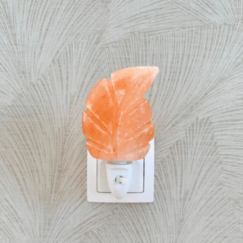 Het Himalayazout nachtlampje blad geeft een warme gloed. Deze bladlamp is echt een pracht op elke slaapkamer.