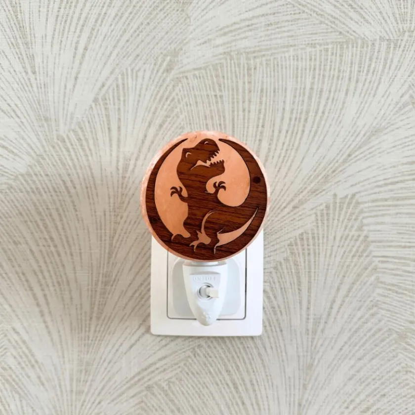 Dit prachtige Himalayazout nachtlampje Dinosaurus 3D, draagt bij aan een gezonde atmosfeer in de slaapkamer.