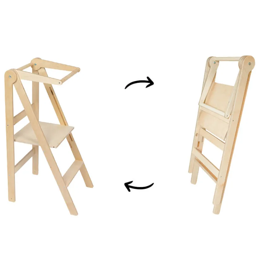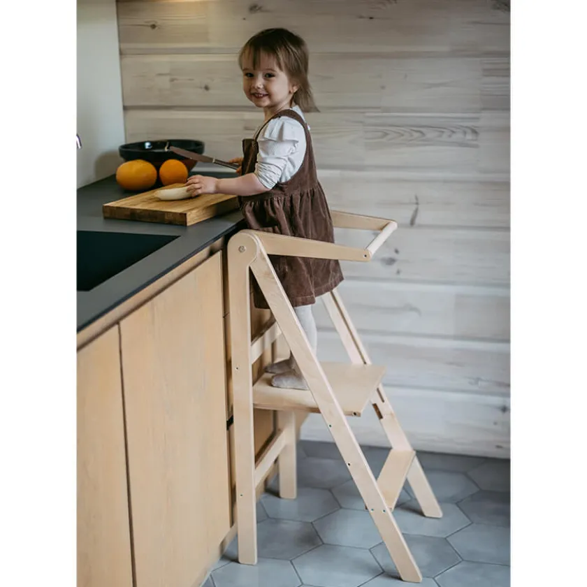 Dit prachtige houten opvouwbare leertoren in de kleur naturel is ontworpen om kinderen te betrekken bij je bezigheden in en rondom je keuken. Door het ontwerp is de leertoren eenvoudig in gebruik en staat je kind veilig en stevig naast je in de keuken. Door zijn opvouwbare functionaliteit is de leertoren eenvoudig op te bergen en staat deze dan ook niet in de weg.