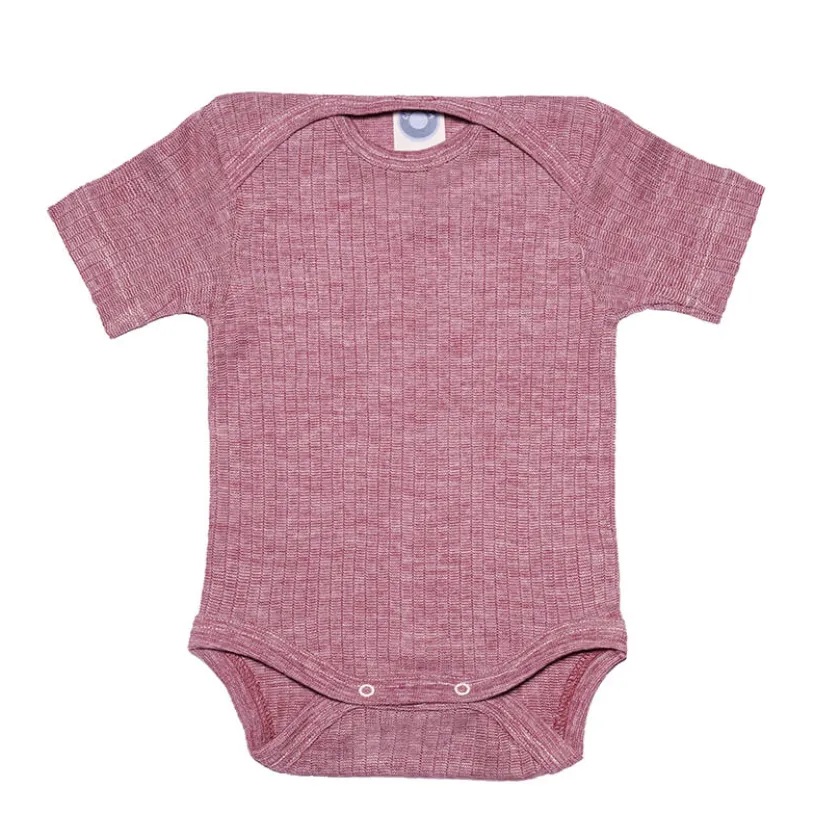 Beschrijving van Cosilana Romper wol zijde katoen wijnrood korte mouw