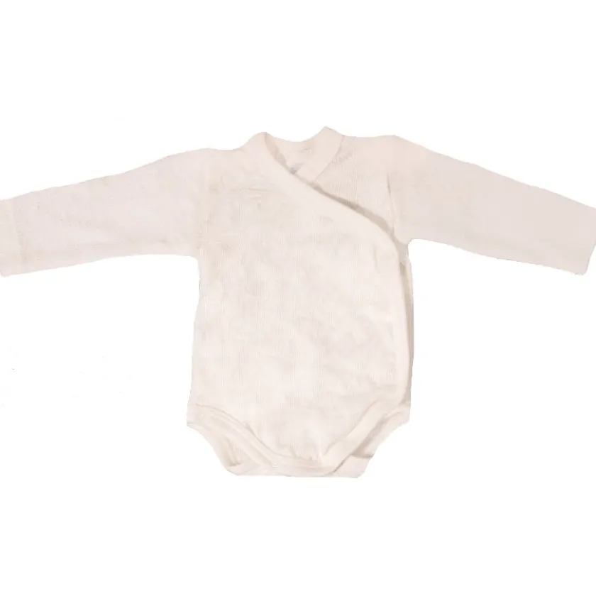 Wol-zijde rompertje van 70% biologische Merino scheerwol en 30% zijde.