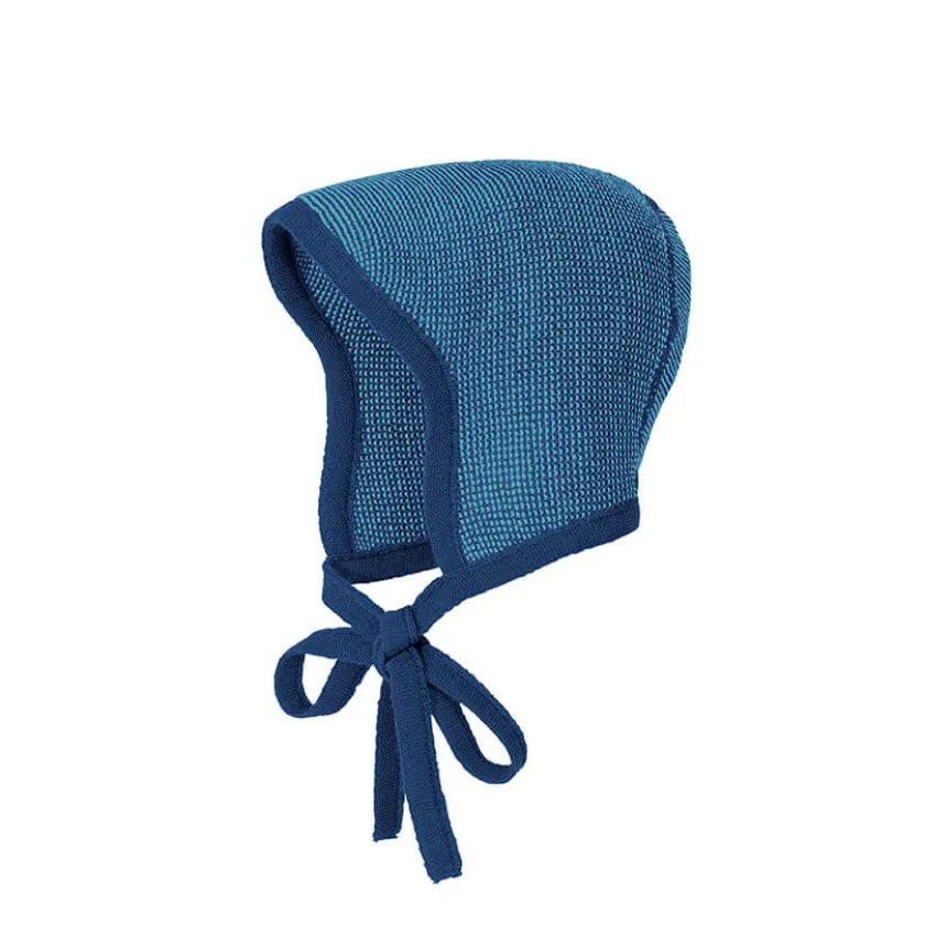 Heerlijk warm Disana strikmutsje gemaakt van 100% biologisch merinos wol.