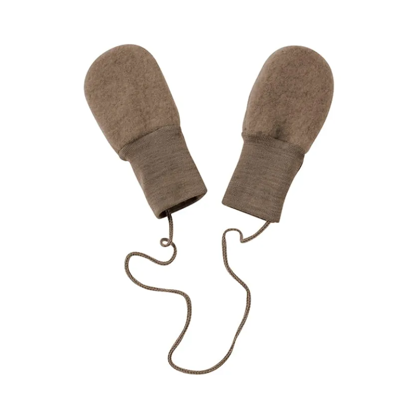 Wantjes wolfleece walnoot gemaakt van dikke biologische wolfleece, zonder duim. Deze stof van Engel is heerlijk zacht en de fabricage is dik maar luchtig waardoor de stof goed blijft ademen.