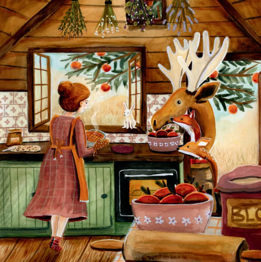 De Nederlandse ‘Illustrator under a blankie’ Esther Bennink creëert werelden die gevoelens van knusheid, geborgenheid en verwondering oproepen. Ze combineert voor haar illustraties verschillende materialen, met aquarelverf in de hoofdrol.