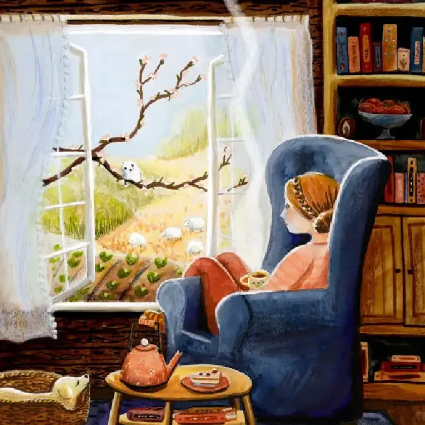 De Nederlandse ‘Illustrator under a blankie’ Esther Bennink creëert werelden die gevoelens van knusheid, geborgenheid en verwondering oproepen. Ze combineert voor haar illustraties verschillende materialen, met aquarelverf in de hoofdrol.