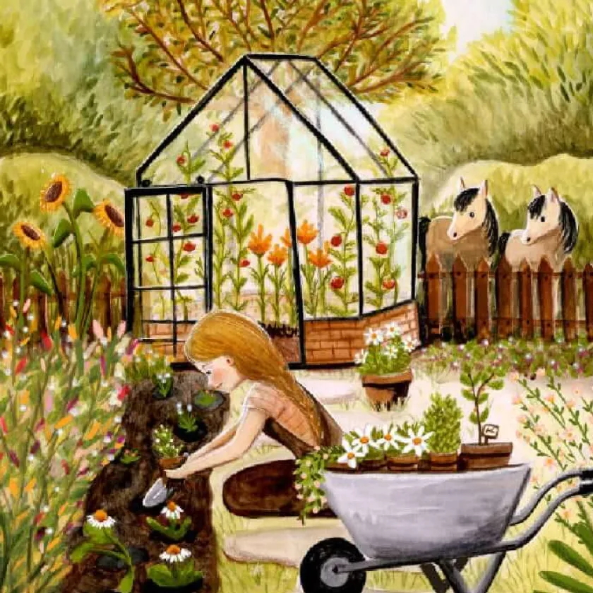 Het gevoel van bloemen plukken in je eigen bloementuin, sfeervol weergegeven op deze toverplaat.