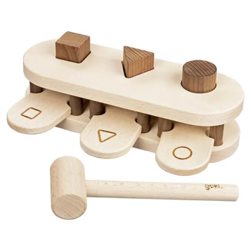 Uniek De goki natuurhamer en vormbank is dé innovatie voor alle kleine hamerliefhebbers. Sorteer de bouwstenen, hamer de symbooltegels energetisch en de bouwstenen schieten omhoog – een geweldig effect en absoluut veilig!