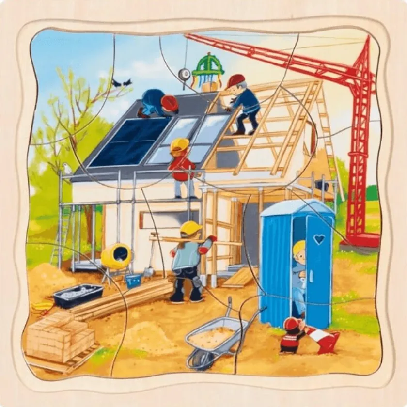 Goki Houten Puzzel Wij bouwen een huis 3-in-1