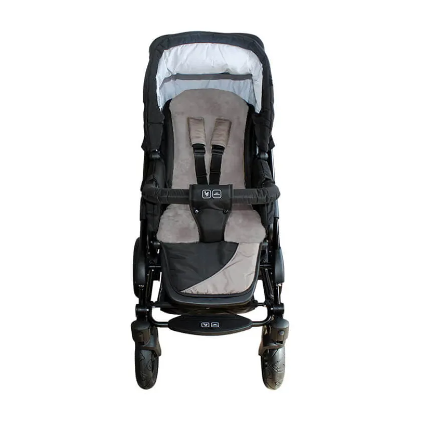 De schapenvacht inlegger is universeel te gebruiken voor alle kinderwagens of autozitjes. Er zitten 5 ‘knoopsgaten’ in de wollen inleg om de riempjes van het kinderzitje doorheen te halen.