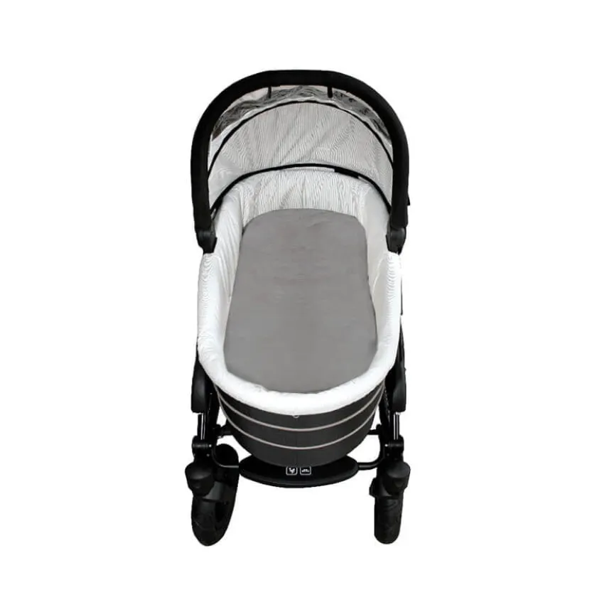 Schapenvacht lamsvel inleg (wollen inleg) voor kinderwagen, cosleeper en wieg. Nieuw, nu verkrijgbaar in deze stoere grijze kleur maar ook in een natuurlijk witte kleur en gouden kleur.