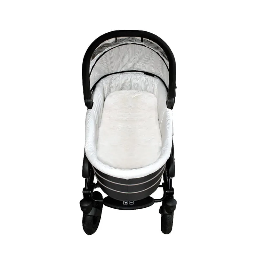 Een lamswollen inleg voor in de buggy of kinderwagen is een must voor het kind, zowel ’s winters als zomers. Wol reguleert namelijk de warmte, beschermd tegen koude maar ook tegen hitte. Het schapenvacht lamsvel inleg is universeel te gebruiken. Er zitten ‘knoopsgaten’ in de wollen inleg om de gordels van het kinderzitje doorheen te halen.