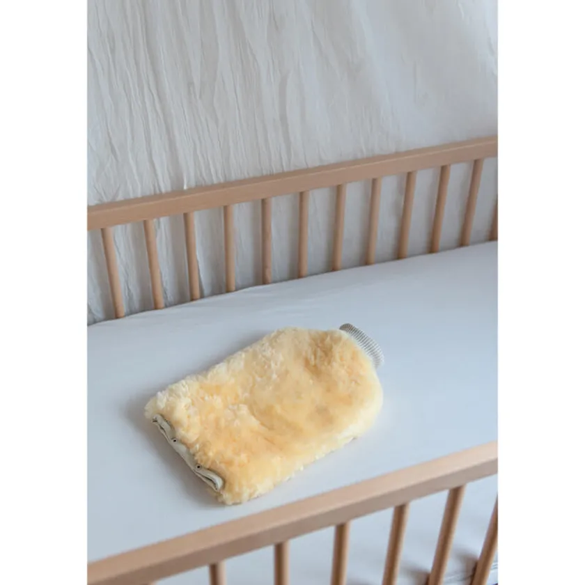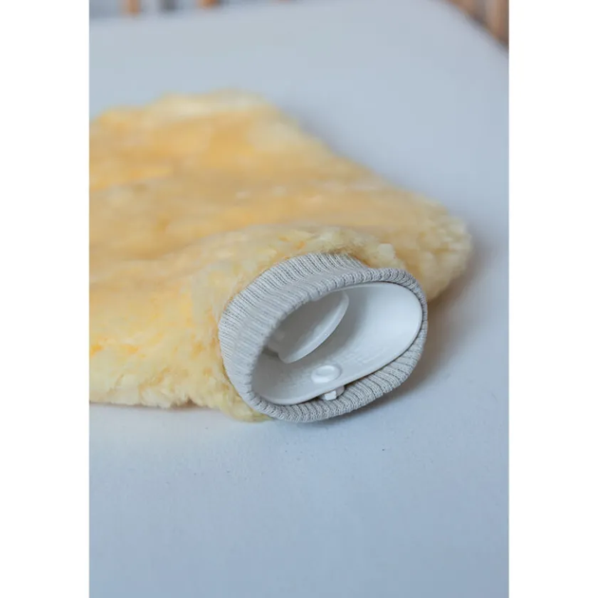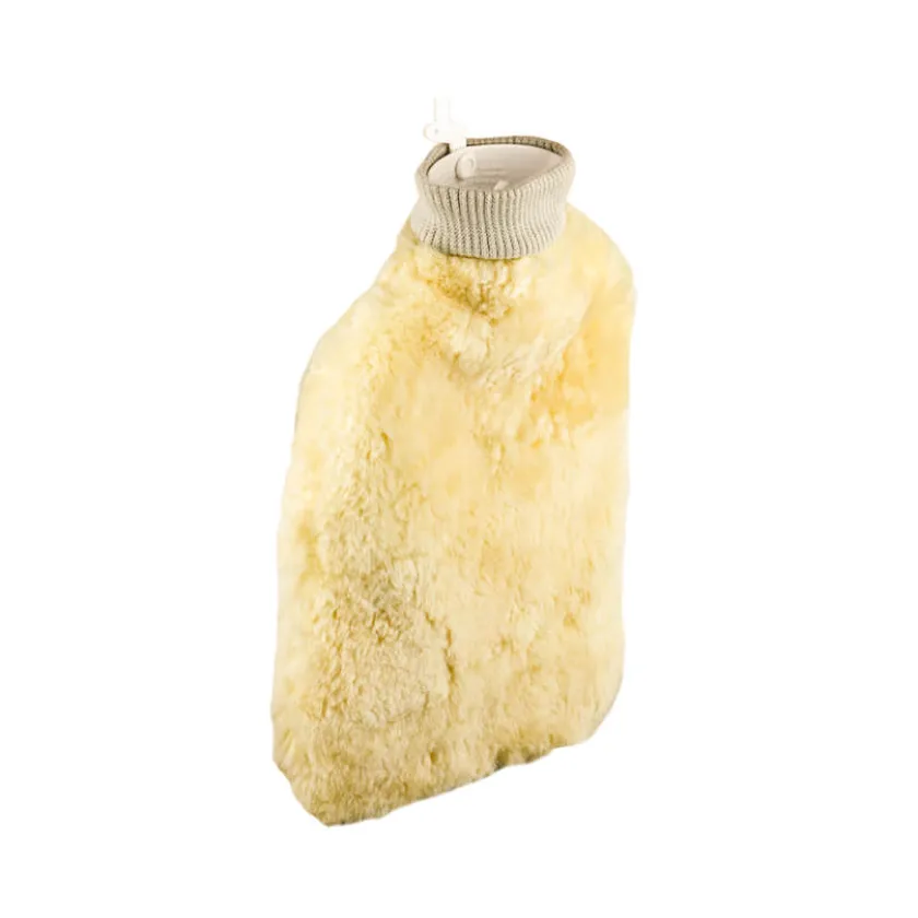 Dankzij de schapenvacht omhulling geeft deze kruik langdurig en gelijkmatig warmte af.