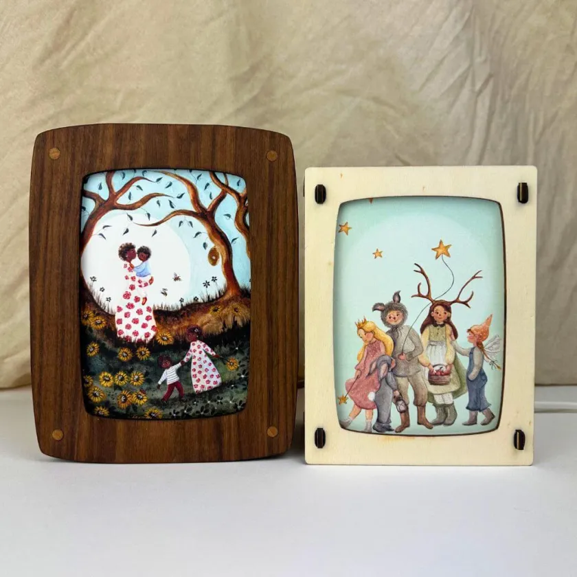 Met dit luxe kaartenlampje maak je in een handomdraai een sfeerlampje van jouw favoriete ansichtkaart of foto. Deze prachtige ansichtkaartlamp heeft een frontje van geolied notenhout. Het is een fijne toevoeging voor je seizoenstafel, maar ook mooi als decoratie in de woonkamer of slaapkamer. Geef je de kaartlamp cadeau? Combineer deze dan met één van onze kant-en-klare kaartensets.