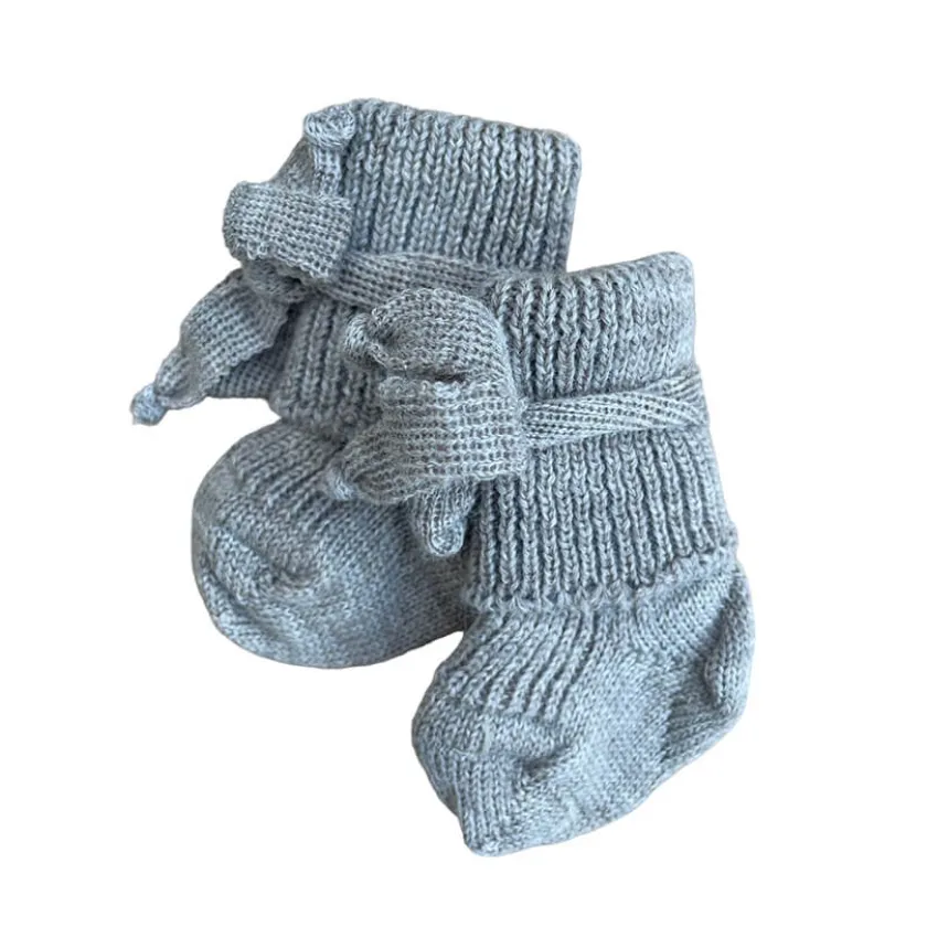 Warme Hirsch Natur strik sokken baby in de kleur grijs. Gemaakt van 100% biologische scheerwol.