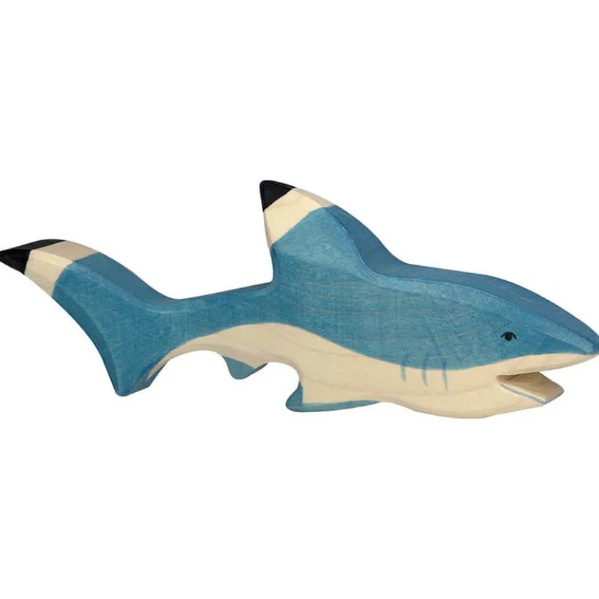 Deze houten haai staat garant voor uren speelplezier. En wanneer er even niet mee wordt gespeeld zal dit stuk prachtig staan op een nachtkastje, de vensterbank of de seizoenstafel.