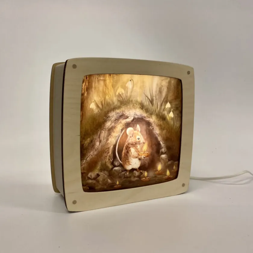 Een toverplaat die perfect past bij Maria Lichtmis; het muisje dat het licht vanuit haar holletje naar buiten brengt en de sneeuwklokjes die boven de grond bloeien. Een warm tafereel.