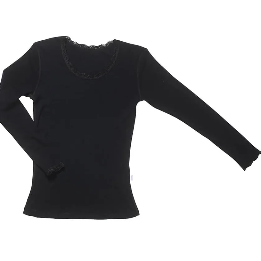 Beschrijving van Joha Dames longsleeve wol met kant – zwart