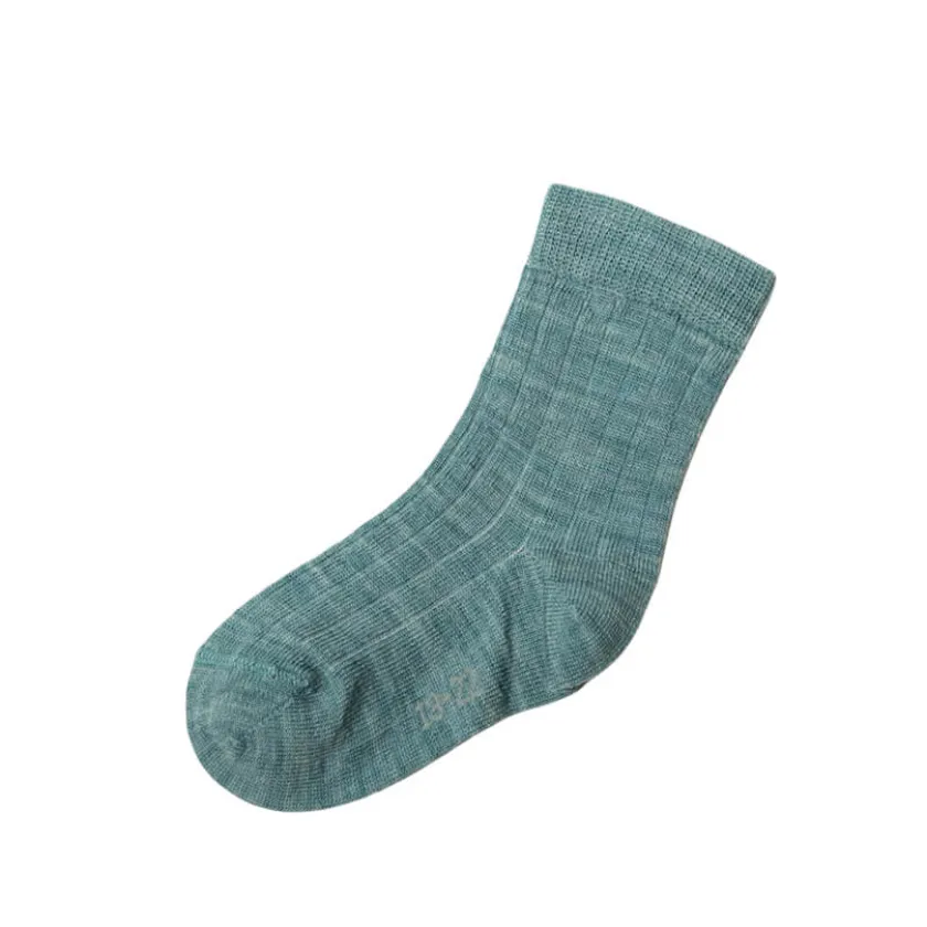 Beschrijving van Joha Wollen dunne Rib sokken – turkoois