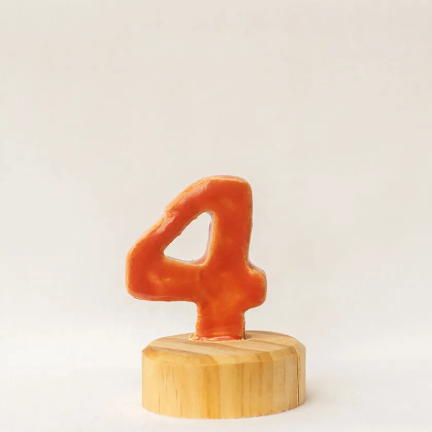 Oranje keramieken steker getal 4. Leuk voor verjaardagen en jubliea! Uiteraard te combineren met onze andere cijfer stekers (0-9)