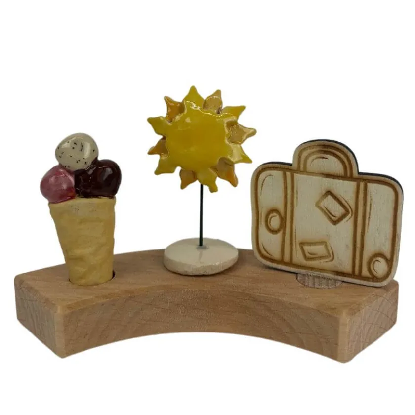- Bevat: 2 keramieken stekers (zonnetje, ijsco) + caravan steker van hout