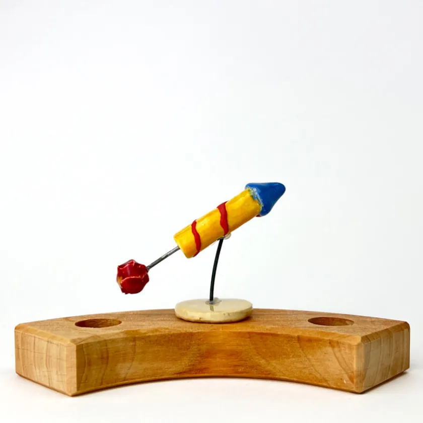 Knallend het nieuw jaar in met deze leuke vuurpijl voor op je seizoenstafel of jaarring. Ook leuk in combinatie met onze oliebollen-steker. Deze gele vuurpijl heeft een blauwe kop en is ook in het groen met gele kop verkrijgbaar. Fijne jaarwisseling!