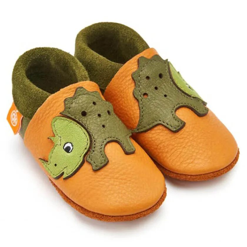 Beschrijving van Orangenkinder Leren babyslofjes Trixie de Triceratops