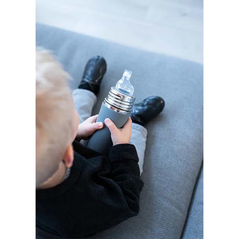 Deze RVS rietjesfles 325ml grijs is gegarandeerd 100% plasticvrij. De RVS rietjesfles is gemaakt van hoogwaardige kwaliteit RVS, gelijk aan de kwaliteit welke wordt gebruikt in de farmaceutische insustrie.